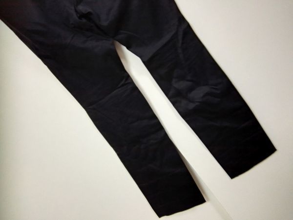 コットンツイル生地のスリムなパンツです。裾上げの処理はしてありません。
