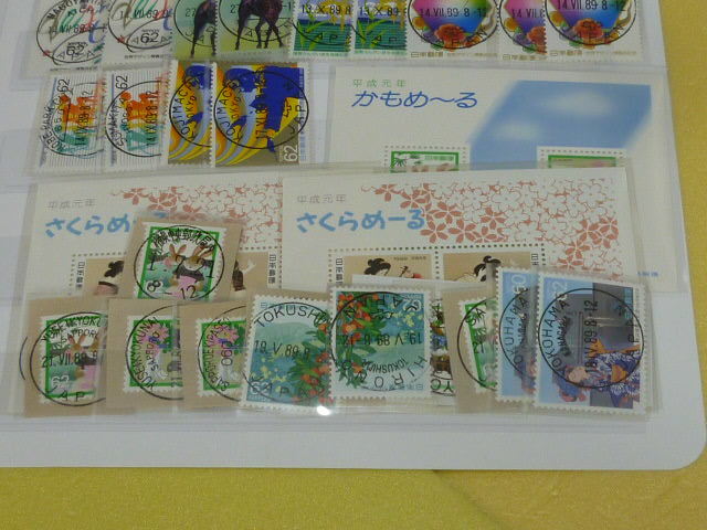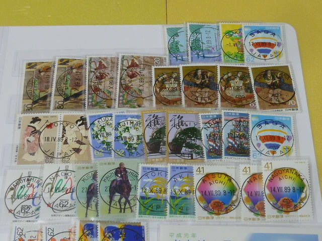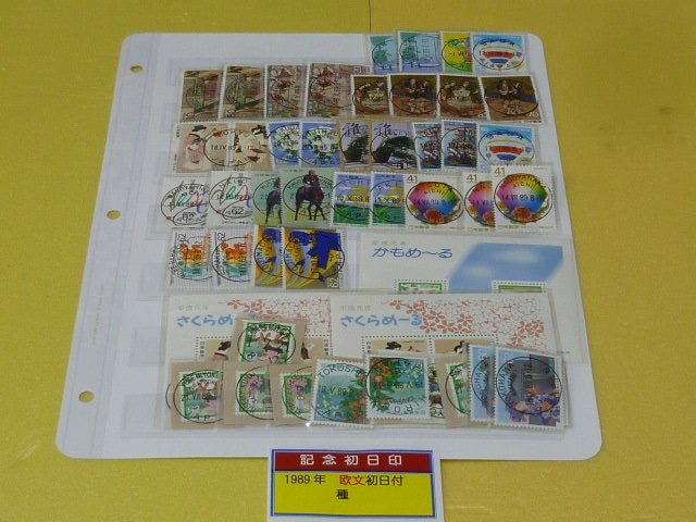 19 日本切手№54 1989年 記念 欧文初日印付 局違・タイプ違含 計48枚+小型シート3種 糊付