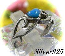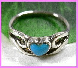 シルバー925銀のハート型ターコイズ付アラベスク ピンキーリング/5号.6号より