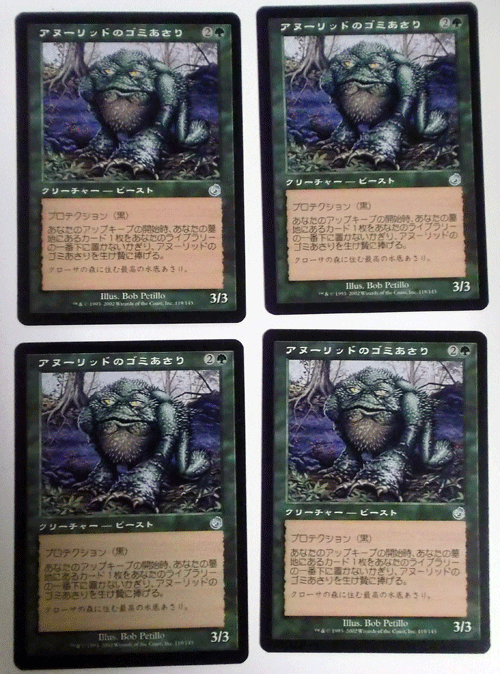 MTG日本語/4枚セット/アヌーリッドのゴミあさり/トーメント/アンコモンです。中古品扱いですので、神経質な方、美品をお求めの方は入札をご遠慮ください。