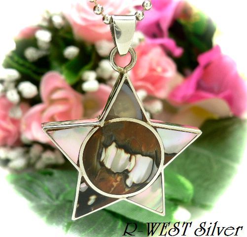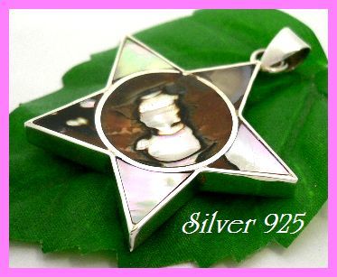 シルバー925銀のシェル貝殻入り 星スター ペンダント/1点のみ