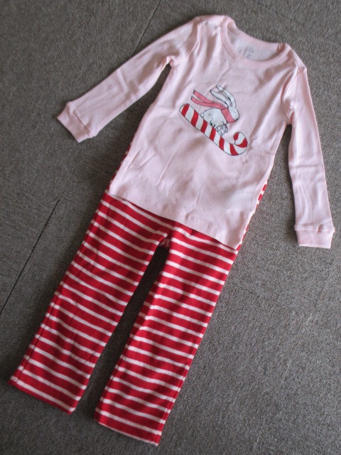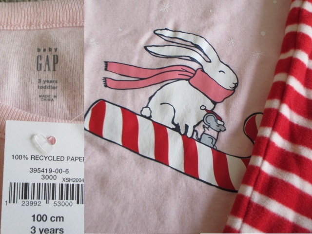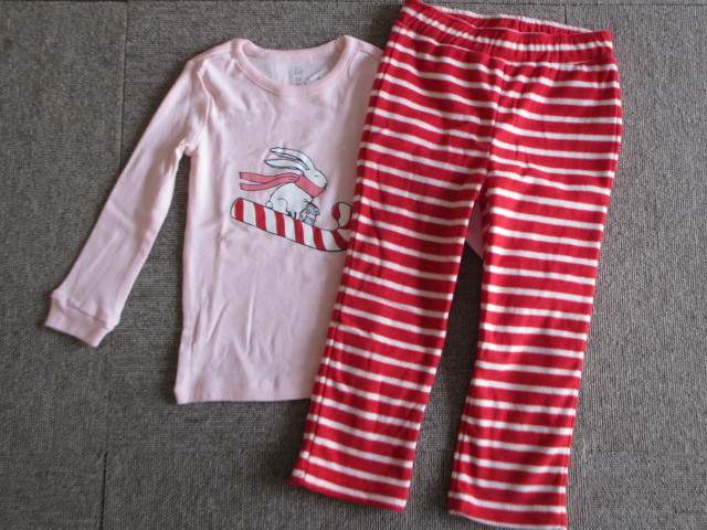 ★送料\185新品baby GAPギャップラビット柄暖かフリースパンツ長袖パジャマ100★赤P