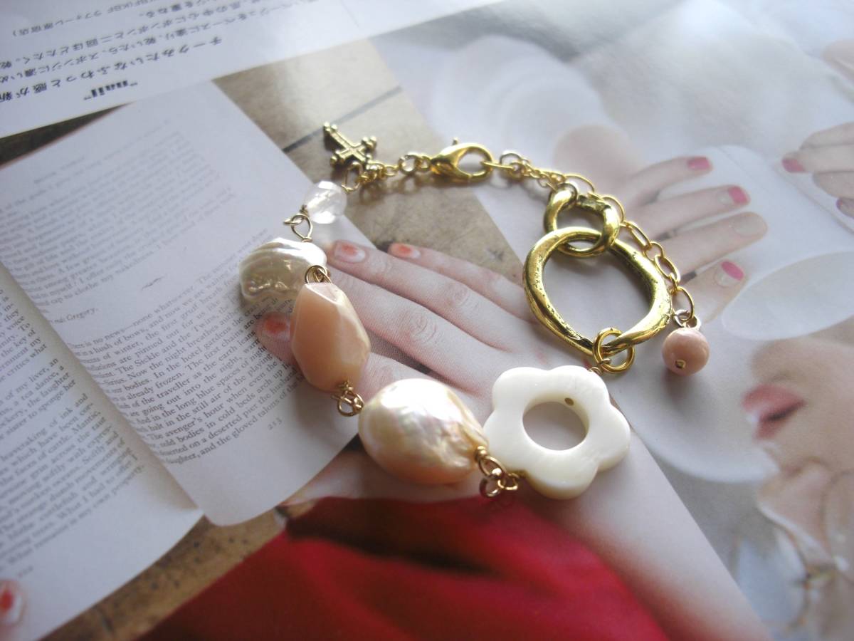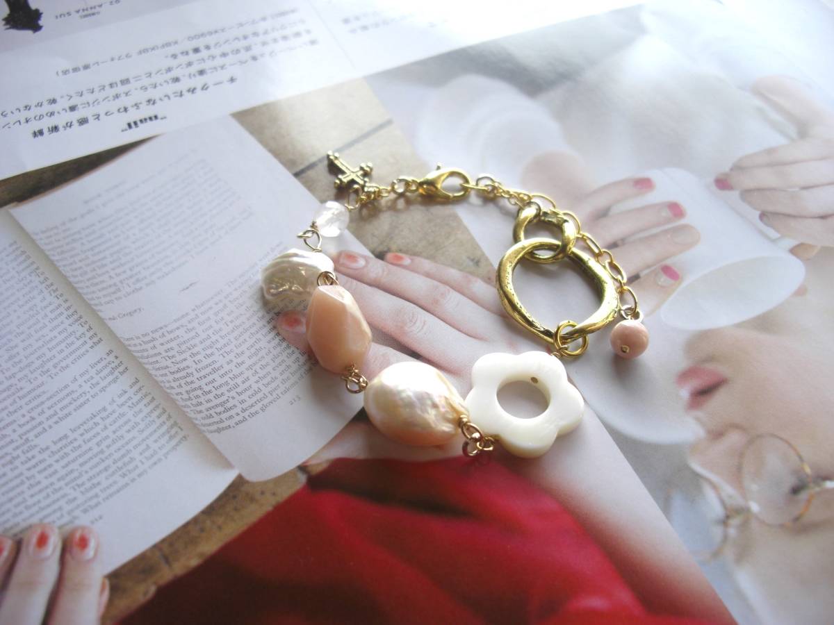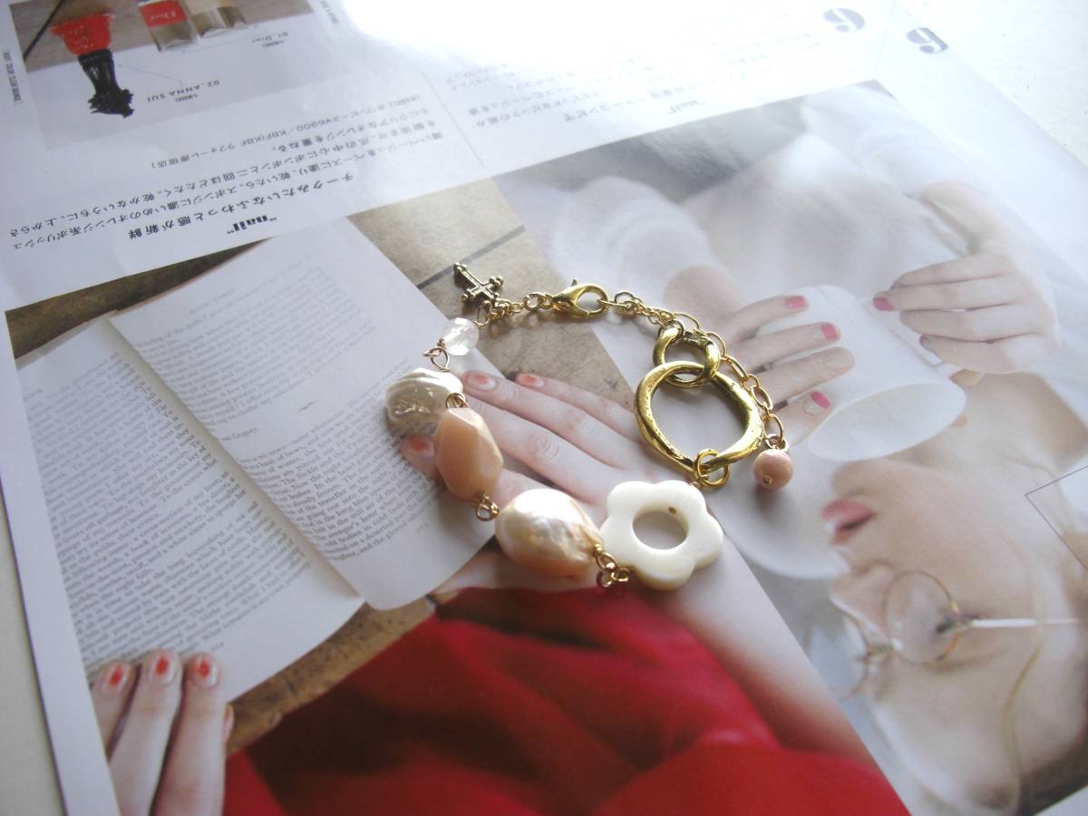 ジゼルのクローゼット・・シリーズです♪私らしさを+して・・ピンクオパールやピンクトルマリン、ローズクォーツやスモーキークォーツ、芥子パール、淡水 パール、シェルビーズなど繊細な石を集めたロマンチックな表情のブレスレットです♪6ミリから18ミリ位ま での丸玉やラフカット、バロックやフラワーリングなど大きさ違い、デザイン違いです♪長さは16センチ+アジャスター6センチで最長22センチ位です♪お揃い のブレスレットやネックレスも出品しています♪♪シンプルでいつまでも着けられるデザインを考えて作りました!ハンドメイドをご理解頂いてノークレーム、ノーリターン でお願いします