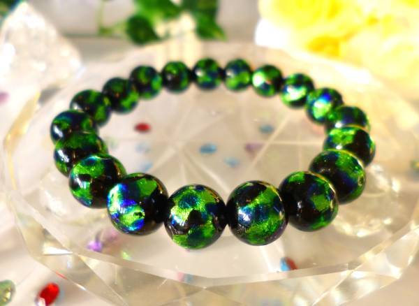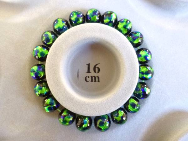 ブラックベースに銀箔を乗せ、その上からブルーグリーンガラス