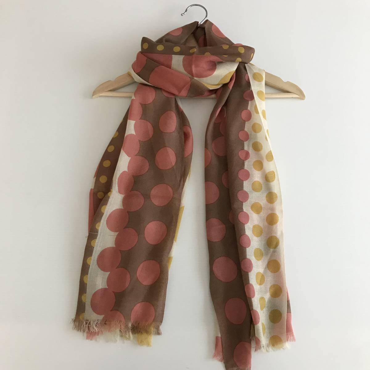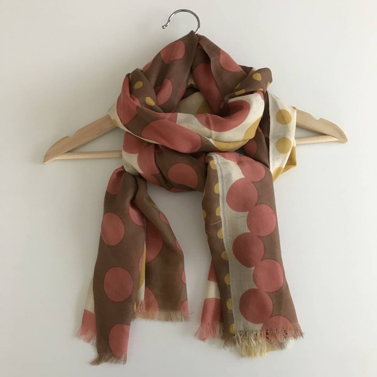 ☆中古 PRIMATTIVO HANAE MORI SPORTS プリマティーボ ハナエモリ 森英恵 スカーフ 数十か所にほつれがあります。 1か所にシミがあります。 《サイズ》 フリンジ2cm、全長187cm、幅61.5cm (自社採寸なので多少の誤差があるかと思います。ご了承ください。) 《素材》 品質表示タグがないため不明 《カラー》 茶、ベージュ、ピンク、黄 ★購入時期、使用期間は不明です。 ★画像の色合いはお使いのPC、スマホ、携帯画面の環境により影響を受けます。 中古商品となります。完璧をお求めの方は購入をお控え下さい。 | |
