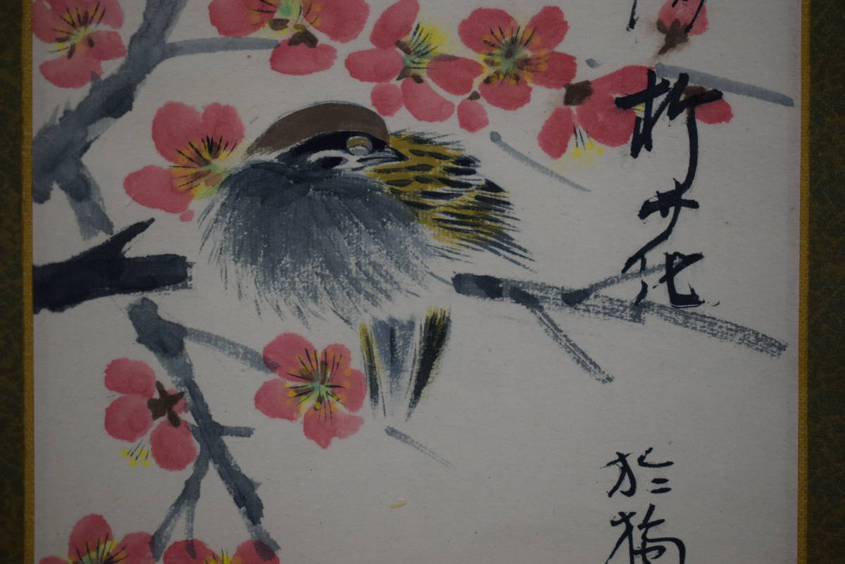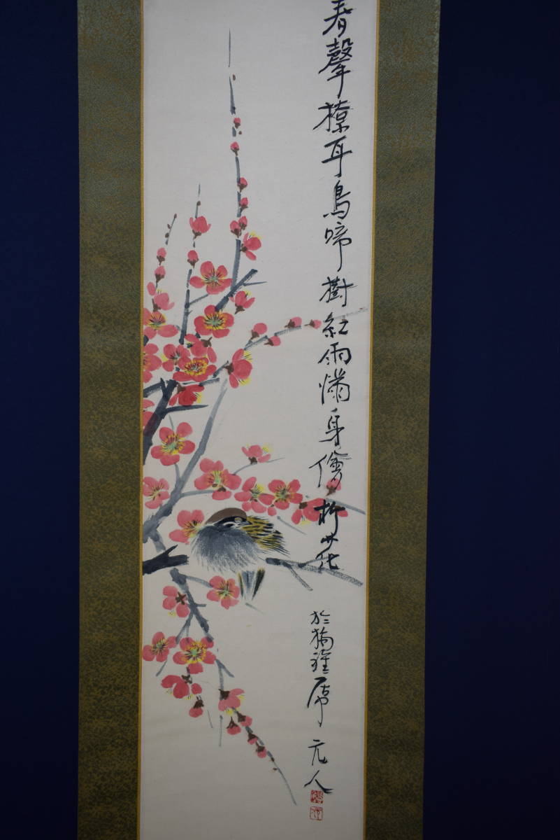 【真作】/杉原元人/梅に小禽図/桐共箱二重箱付/