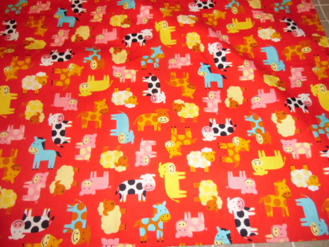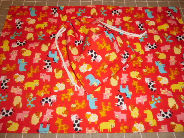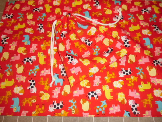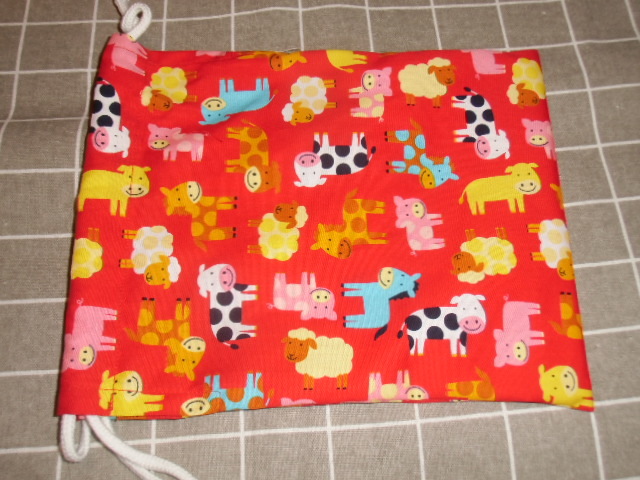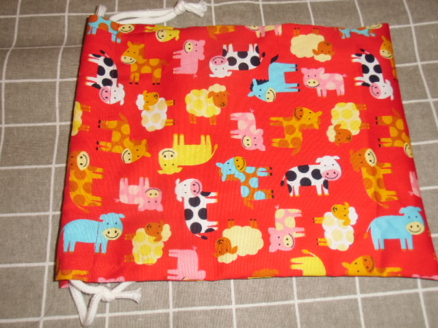 No.163  大判裏付ランチョンマット&巾着 ハンドメイド  40x60 赤色アニマル柄 女の子