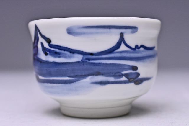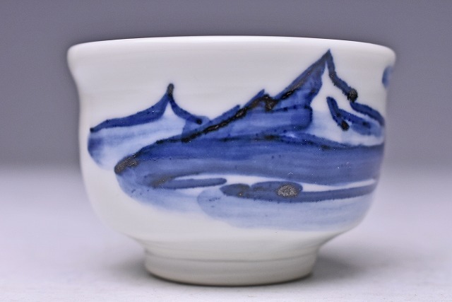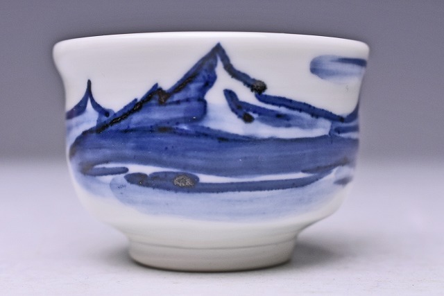 物故作家 篠田義一 氏の 作品です。 小品ながら 染付 で 日本百名山 に 数えられる 北アルプス 常念岳 を 描いたと思われる 雄大な絵付が 心地良い 逸品です。