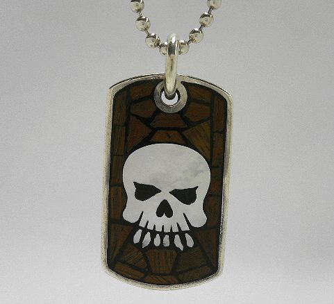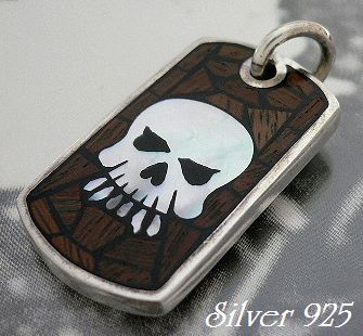 シルバー925銀のスカル シェル&天然ウッド プレート ペンダント/ALL50%OFF