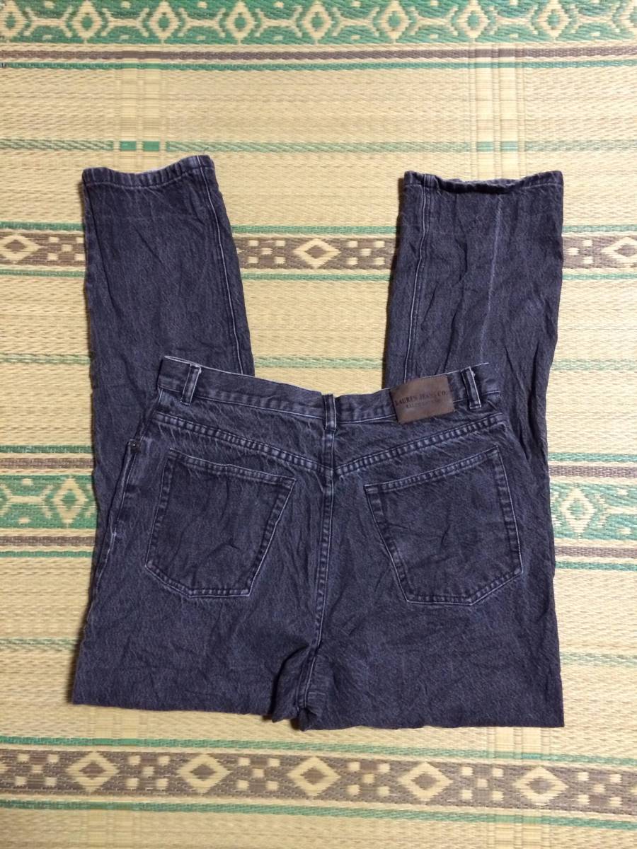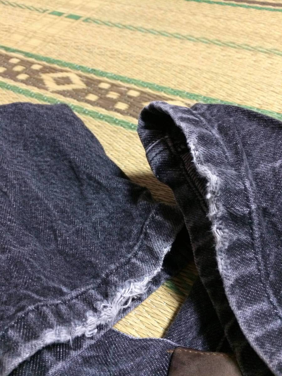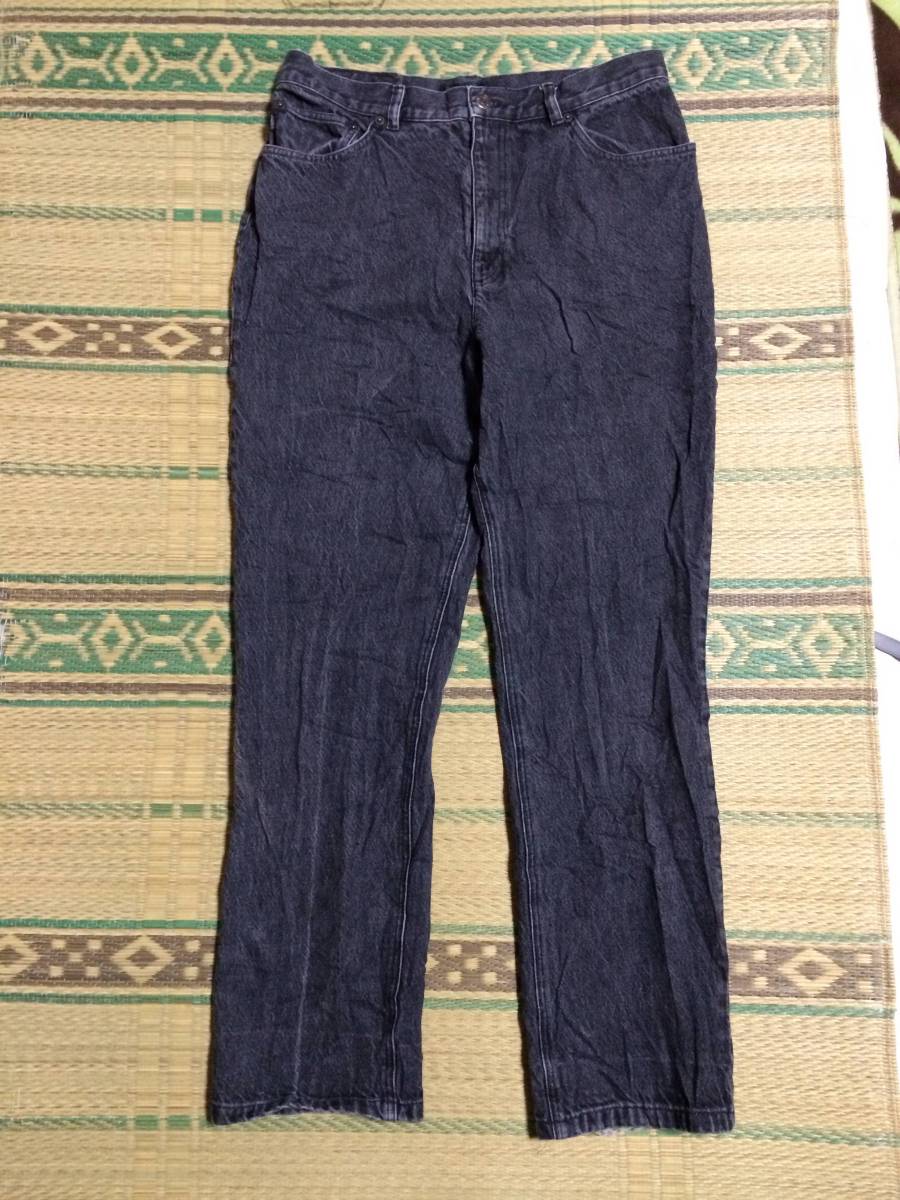 本商品裾後ろは画像の様に削れもつれありますが古着なりに許容範囲だと思います、前後右裾上付近に折りジワ色抜け感がややありますがこれも古着なりです、神経質な方はご遠慮下さい、シルエットは裾にかけてややスリムになっています、一般的なW34位だと思います、実寸を参考にご検討ください、平置きウエスト約42.股下約78です、