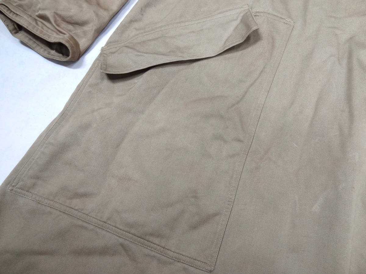 かなり希少です。これ以外に見たことがない珍品です。タグなどは欠損しているので国がわかりません。デザイン,生地,作りなどから判断してもUSミリタリーかフランスだと思いますがおそらくUSもので間違いないと思います。生地感や作りから推測しても40Sで間違いないです。
