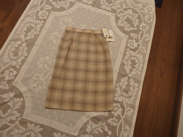 ・サイズ:表記40ですが細身です。採寸寸法を参考にして下さい ・素材:表地~ウール100% 裏地~キュプラ100% ・平置実寸:W31.5 総丈61 ヒップ辺り46.5 <素人採寸ですので多少の誤差はお許し下さい> ・新品~タグつき(途中で切れています) とも布つきです。定価24000円だと思います ・ドイツ素材です ・お上品なベージュ系のチェック柄スカートになります ・後ろに9センチのスリットがあります ・後ろファスナーです ・SからMの細身の方くらいではないかと思いますので採寸寸法を参考にして下さい ・春に向けてピッタリのお品になります **汚れ、シミなど出来る限りチェックしておりますが、万一見落とし等ございましたらお許し下さい** |