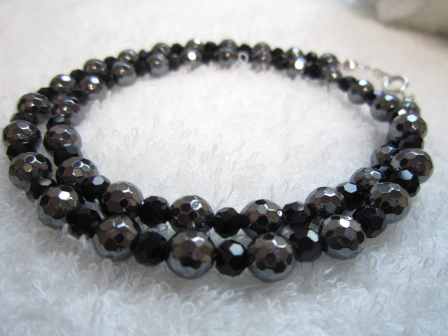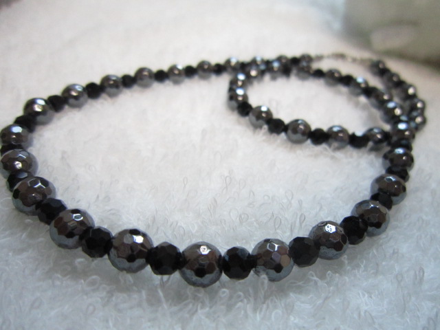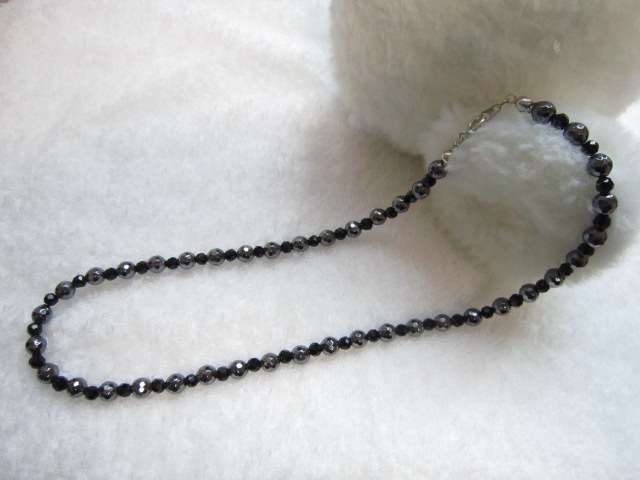 ☆ヘマタイト石とガラスビーズ玉を組み合わせたお洒落なネックレス☆ | |||