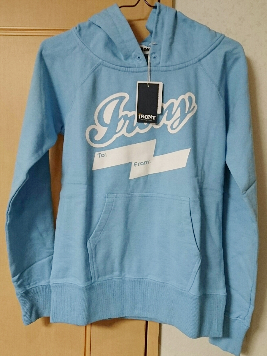 送料無料・定価¥12390【286】新品未使用タグ付き★IRONY(アイロニー)・パーカ(パーカー★サックス(スカイブルー)×ホワイト★レディース