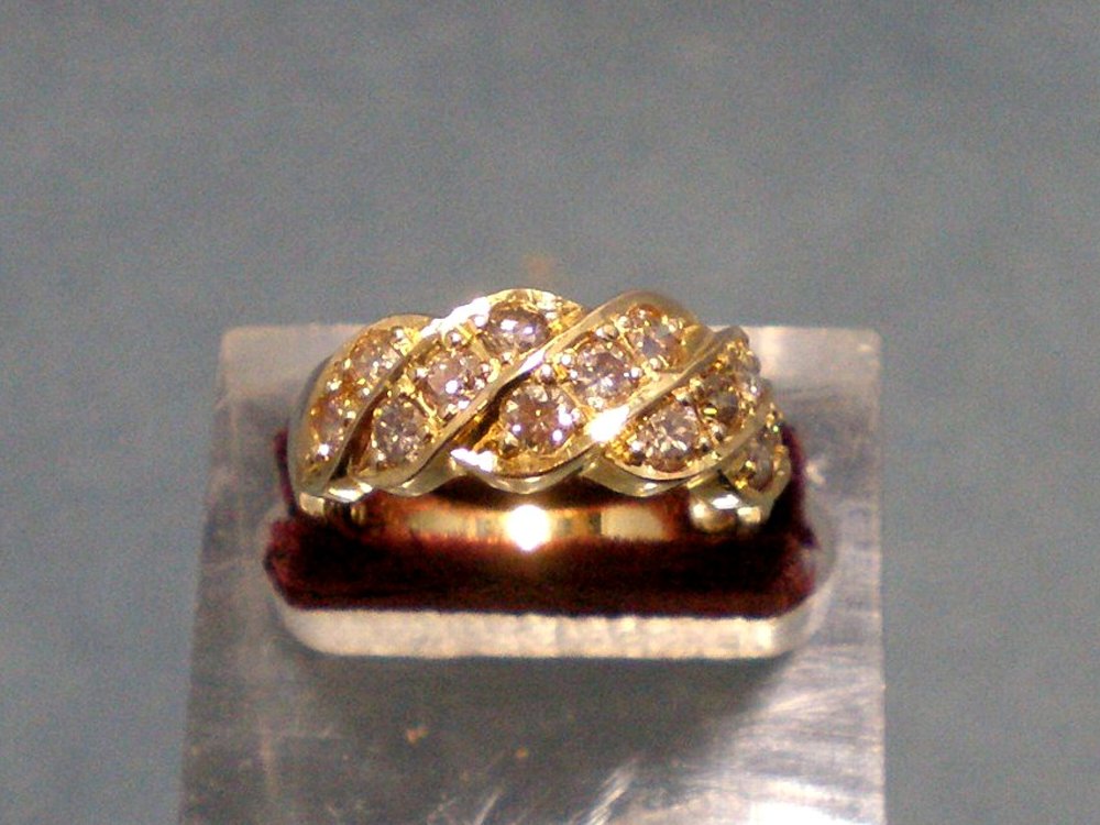 13個のダイヤ(総計1.00ct)をあしらえたデザインで総重量4.9g、リングサイズは12号です。