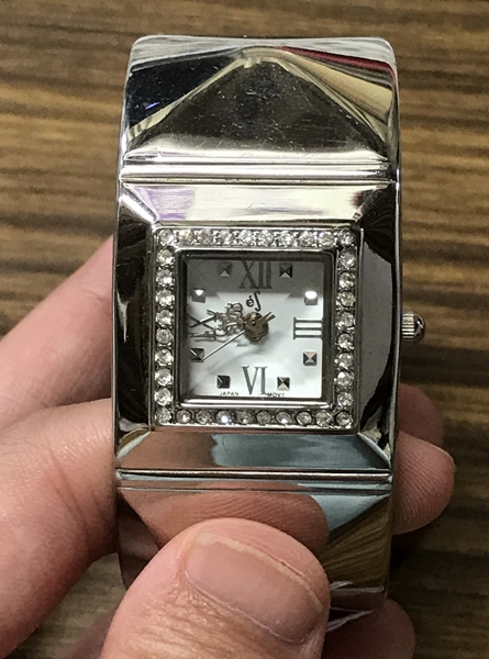| 商品説明 | 婦人用 ブレスレット型腕時計 シルバー 中古の出品です。 【商品状態】 中古品につき擦れや小傷の使用感があります。 出品時にしっかり秒針が動いていることを確認しております。 腕周りは約16センチです。 発送時に電池交換はいたしません。 詳しくは写真を良くご確認のうえご入札ください。 ノークレームノーリターンでお願いいたします。 |