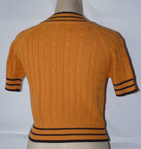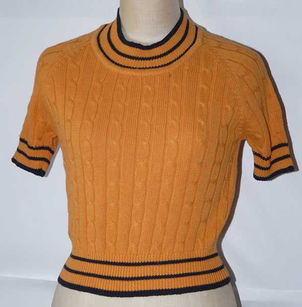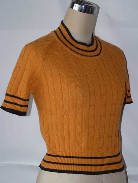 綿100% ケーブルー編み レディース 半袖 Crew NeckニットOrange