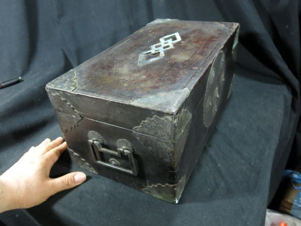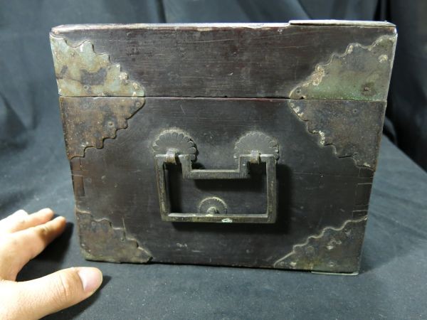 ③A 明時代 取っ手付き黒塗り箱 名品 漆工 木工 時代箱 手箱 貴重品 文化財 中国 古玩