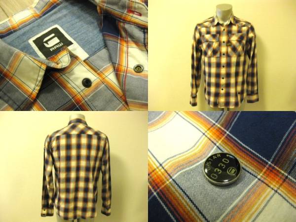 名作 本物 美品 G-STAR ROW ジースターロウ チェック柄 長袖シャツ M