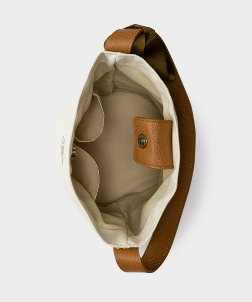 こちらは、大きなリボンがモチーフのバケツ型トートバックです。キャンバス素材にオリジナルブランドロゴのプリントがデザイン。持ち手部分には、イタリアから輸入した本革を使用しております。カジュアルな印象のトートバッグに、リボンモチーフと持ち手のレザーで、女性らしいフェミニンさをプラスしました。