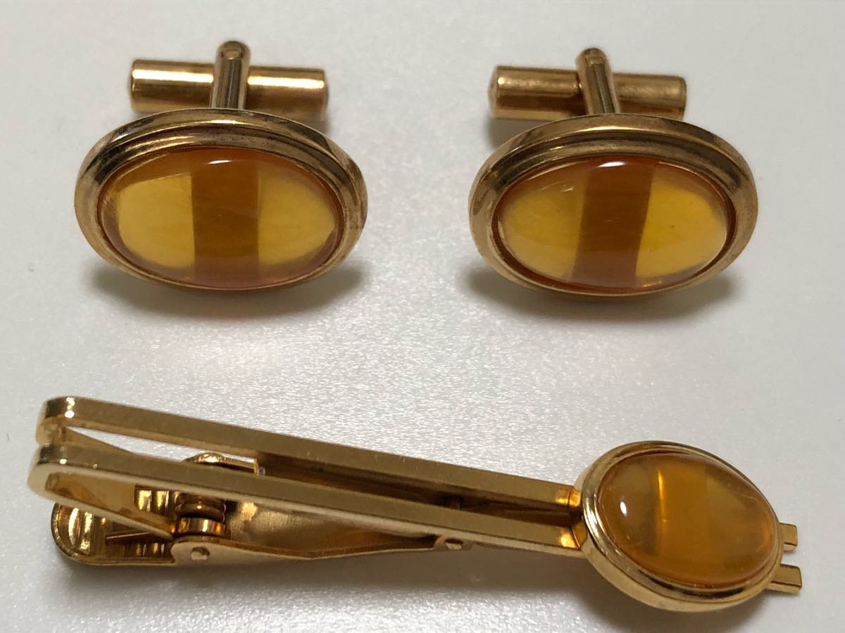 白甲の本鼈甲を使用した、デザインタイピン&カフスです。鼈甲部分に欠けや虫食いはありません。