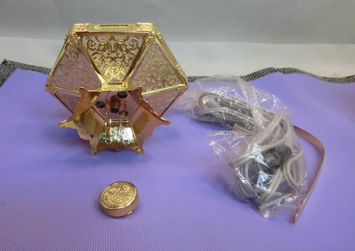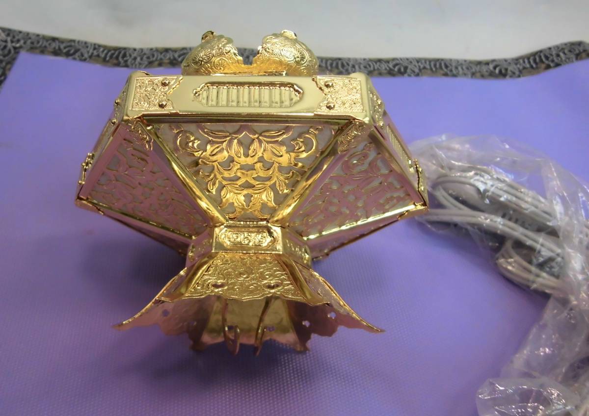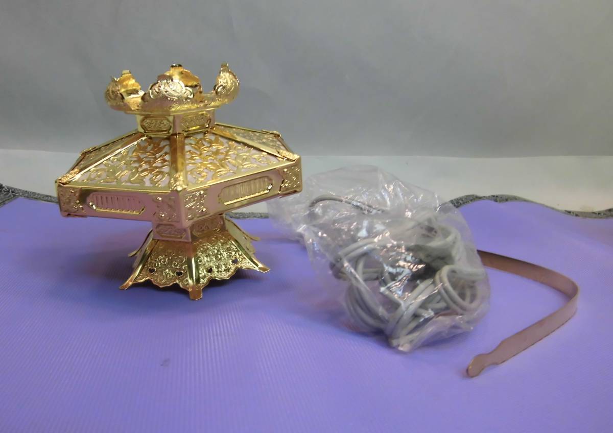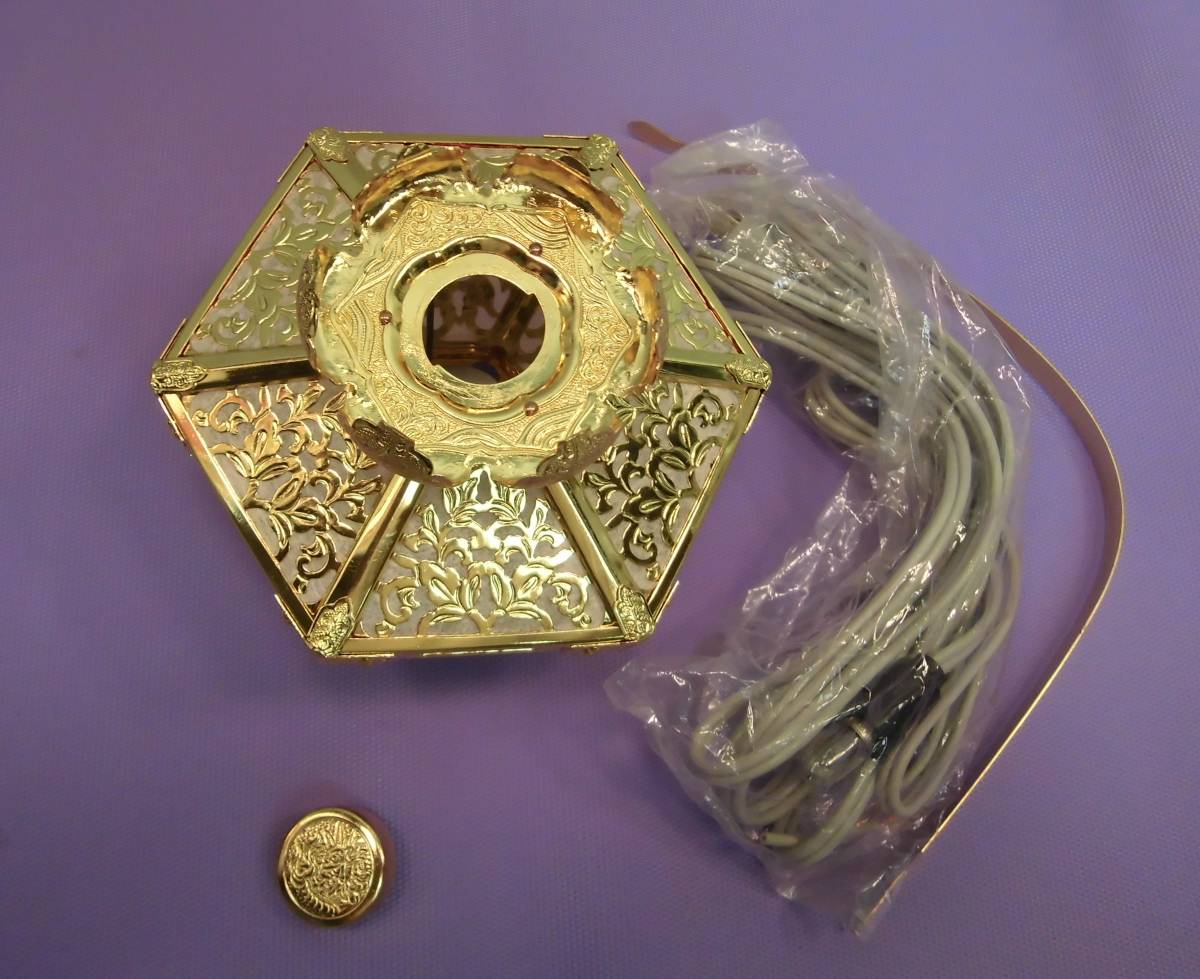 仏具 六角型 小菱吊灯篭 純本金付 コード付 真鍮 4寸