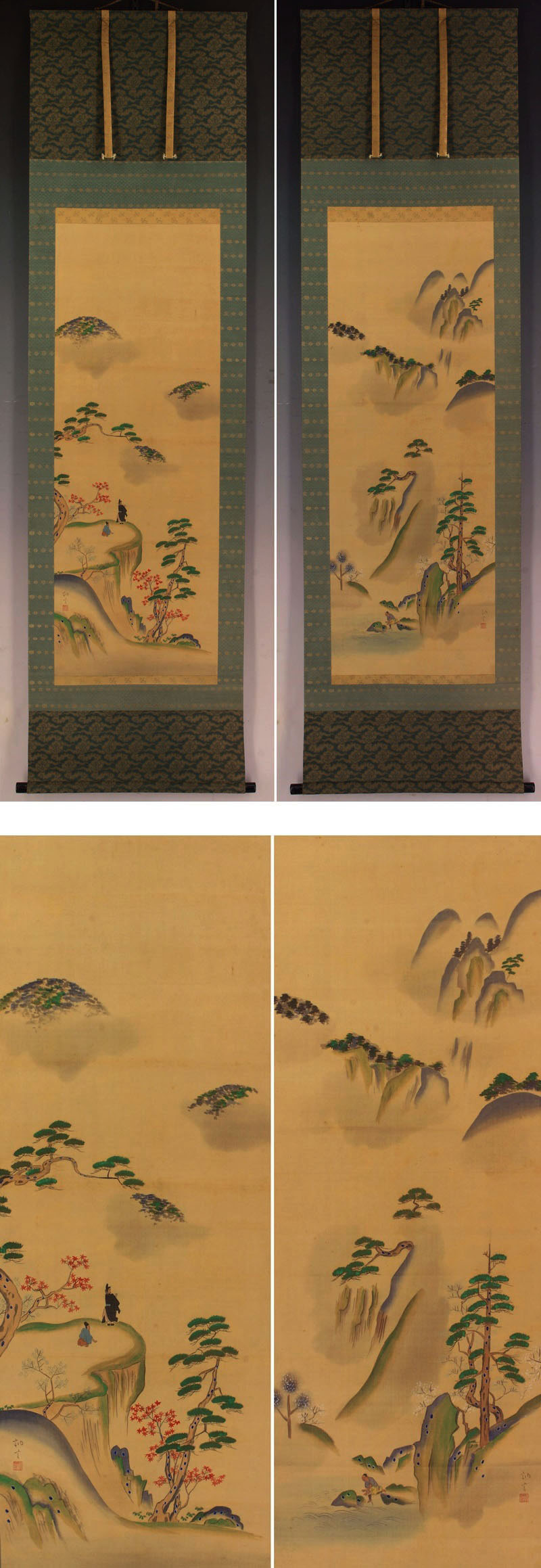 | №1804121 名品【真作】田中訥言【双幅・春秋山水】◆絹本◆合箱◆掛軸 | |