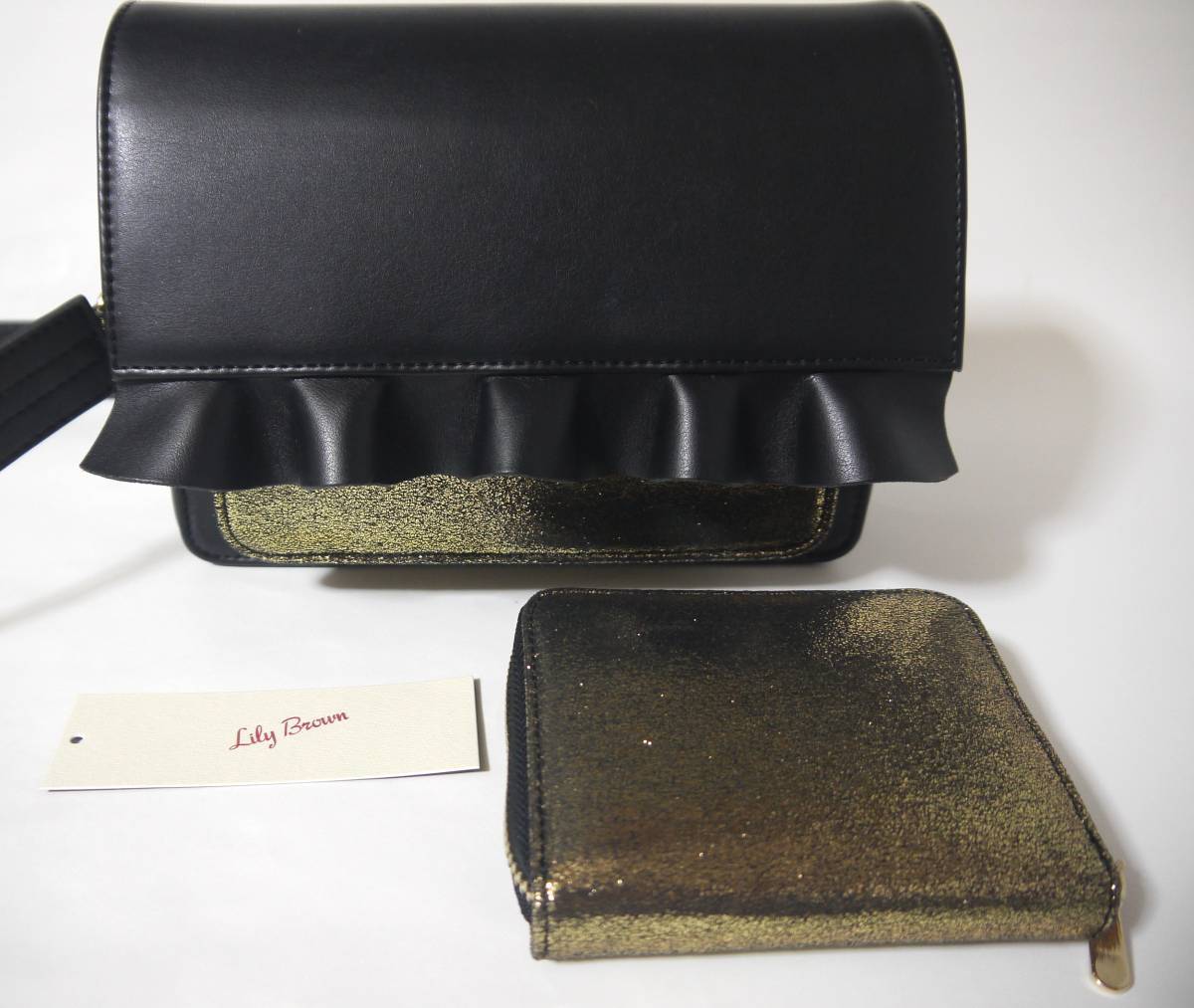 フリルがとてもかわいいリリーブラウンのショルダーバッグです! ポケット部分がゴールドになっていておしゃれです。 ポケット部分と同じ素材のラウンドファスナーポーチをお付けします。 ショルダーストラップは外すこともできます。 石原さとみのドラマで使用されていたものです。 税込11,232円で購入し、黒は人気完売品でした。 一回短時間使用しただけの美品です。 ◆サイズ バッグ:横(22cm)縦(16cm)マチ(6cm) ウォレット:9cm×11.5cm ◆仕様 バッグ:マグネット開閉・外ポケット×2 内ポケット×1 ポーチ:ラウンドファスナー・カードポケット×4 ホックポケット×1・ポケット×1 | |||