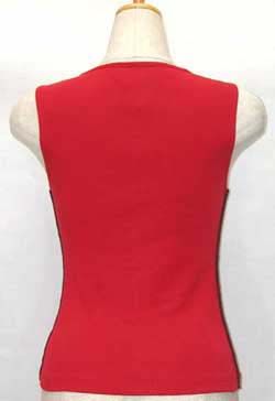 フランス製ノースリーブTシャツS デニムパッチデザインRed