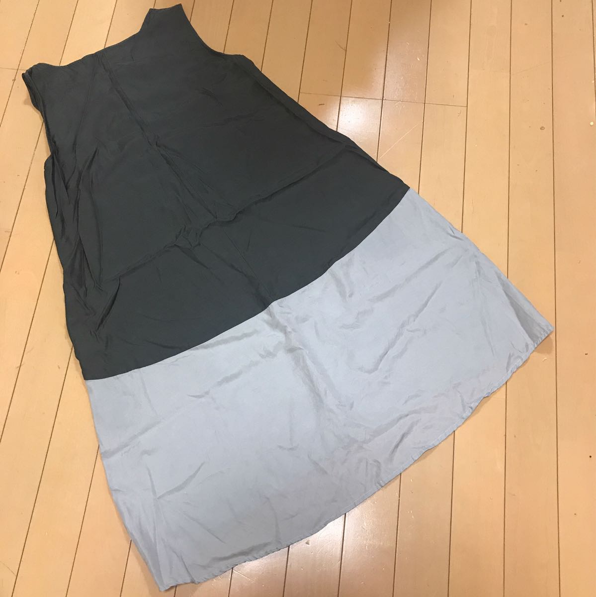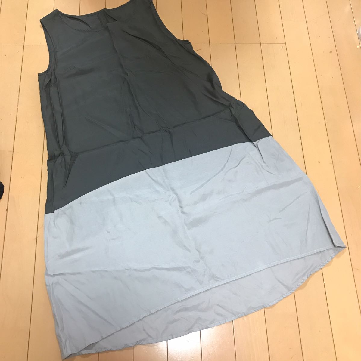 ◆スルッとした少し光沢ある素材が大人カジュアルなノースリーブチュニックワンピース♪丈は後ろが長くなっています