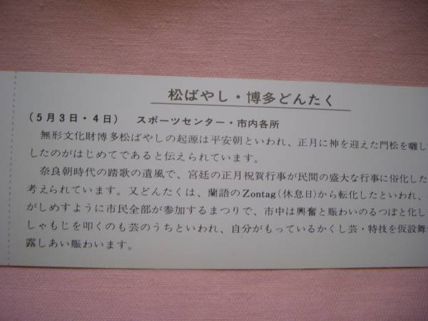 | 【国鉄バス九州】国鉄バス沿線お祭りシリーズ乗車券 博多どんたく■s53 | |