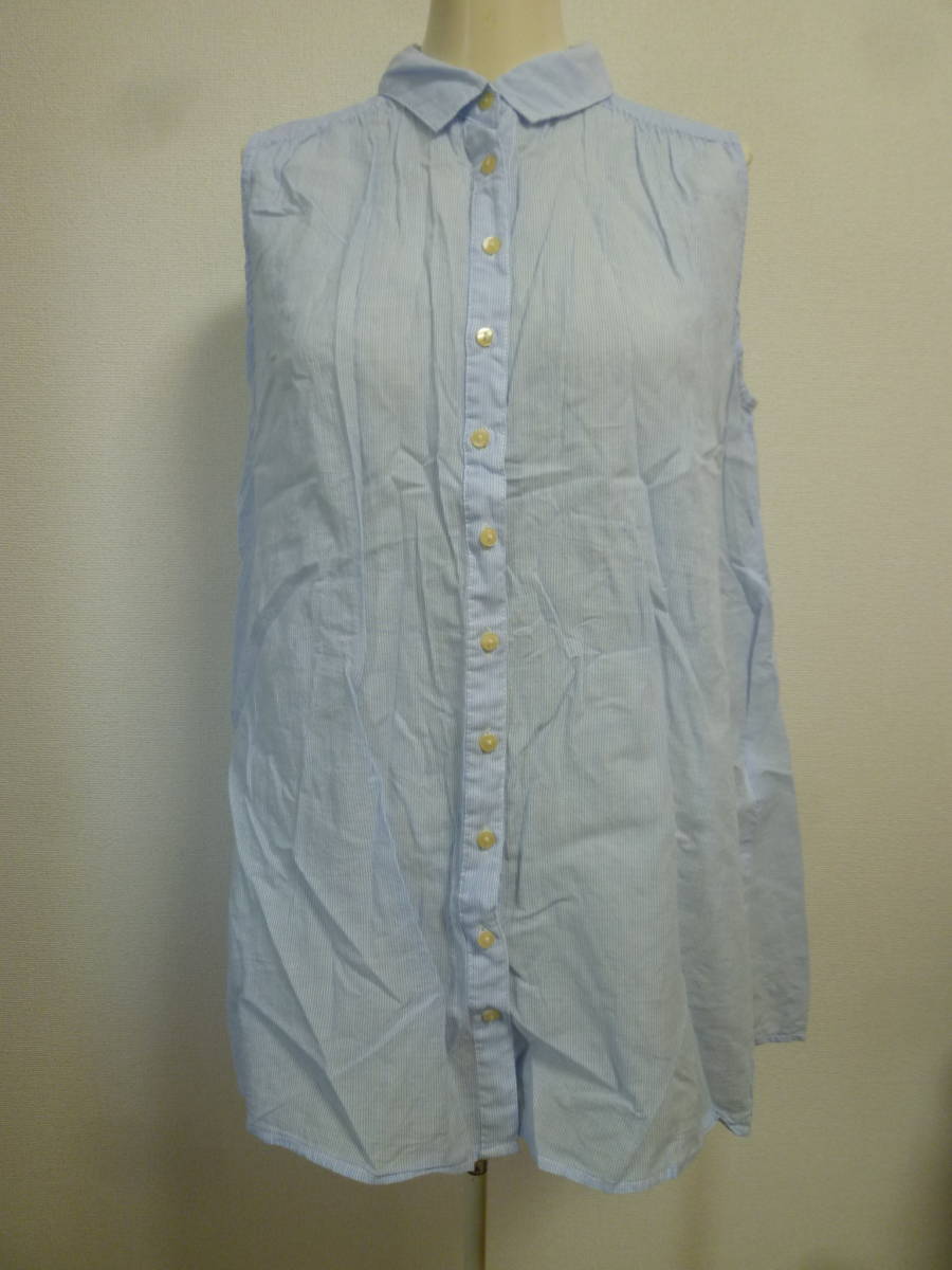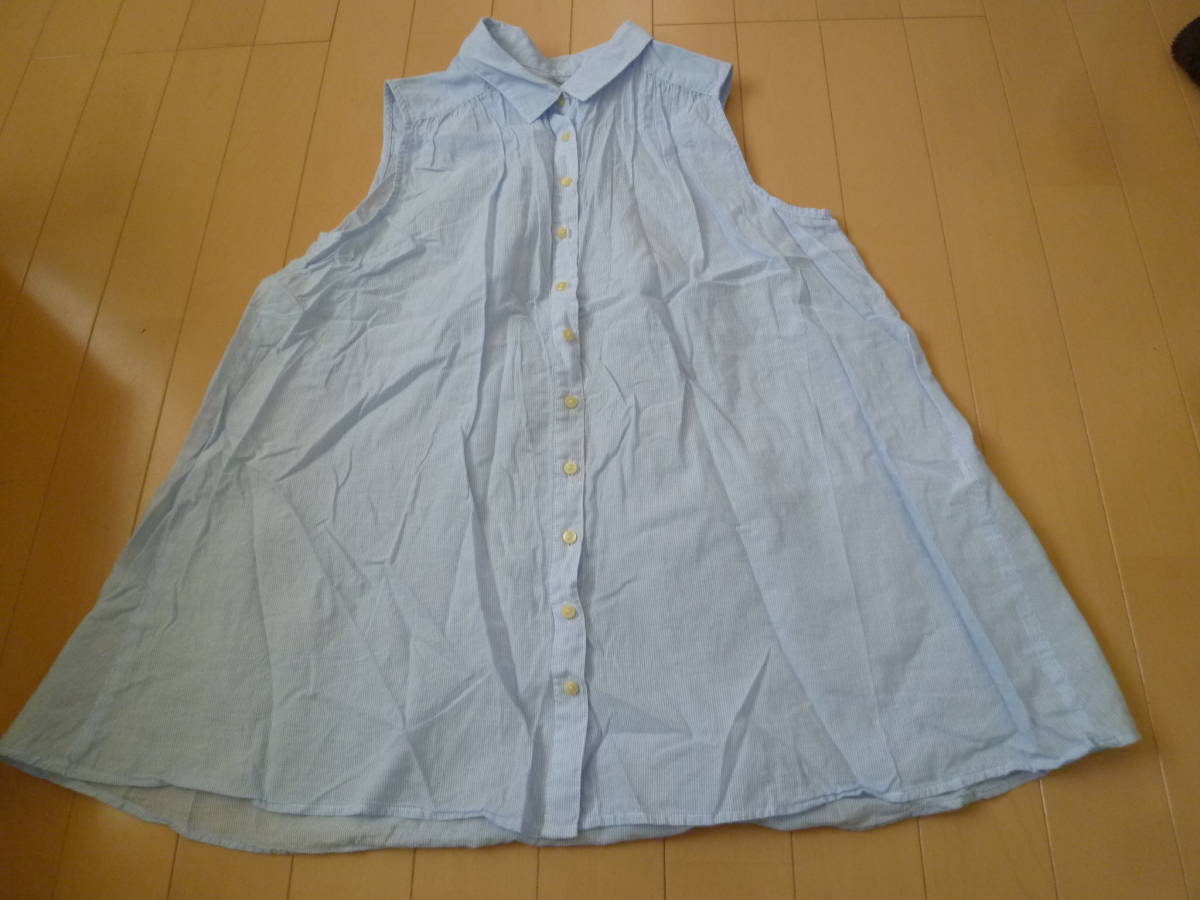 earth musuc&ecology/アースミュージック&エコロジー♪水色系ストライプフレアーノースリーブシャツF♪328