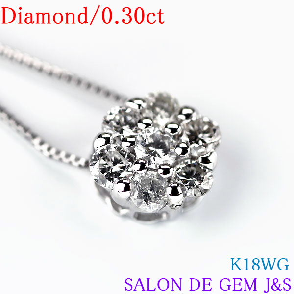 【送料無料】【上質】【フラワーモチーフ】【K18WG:天然高級ダイヤモンド ペンダント ネックレス】D0.30ct/K18WG:40cmチェーン/総重量1.3g