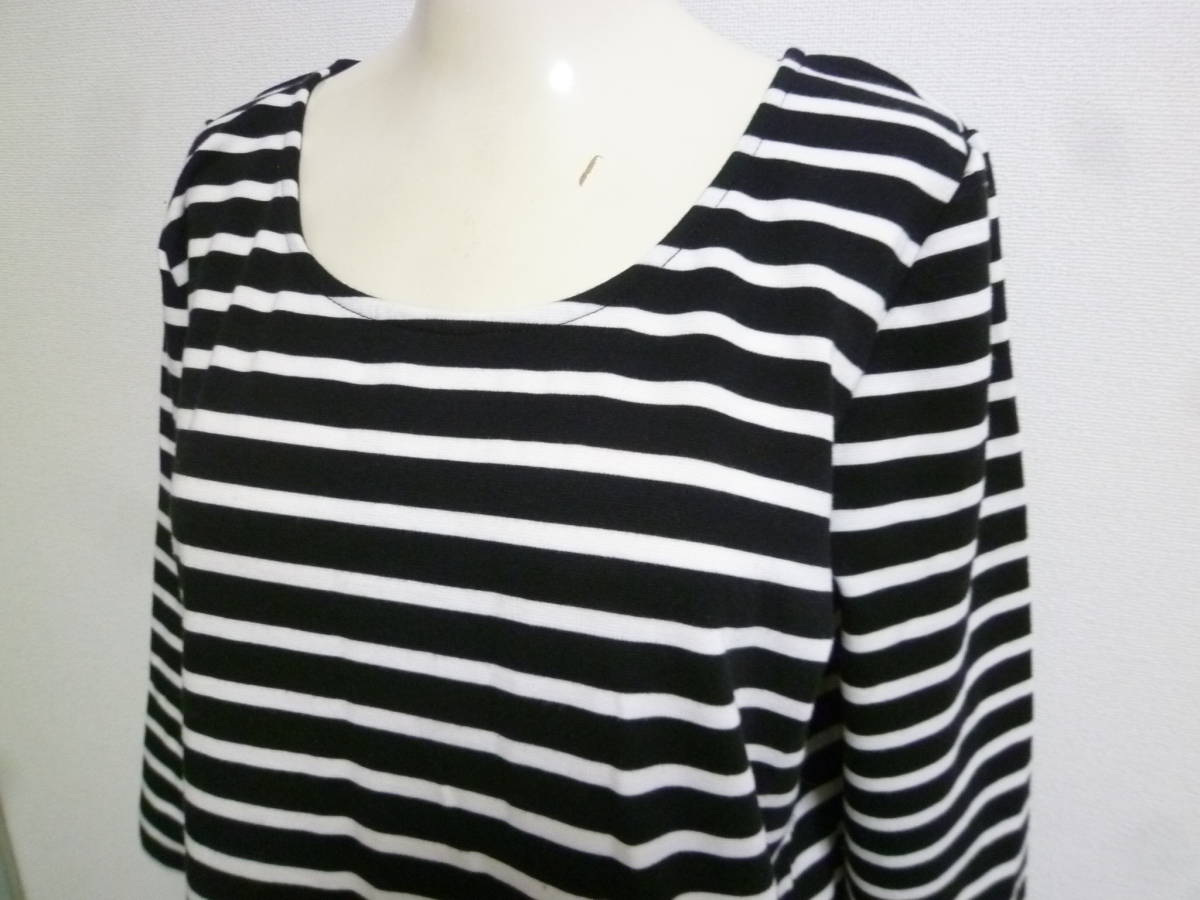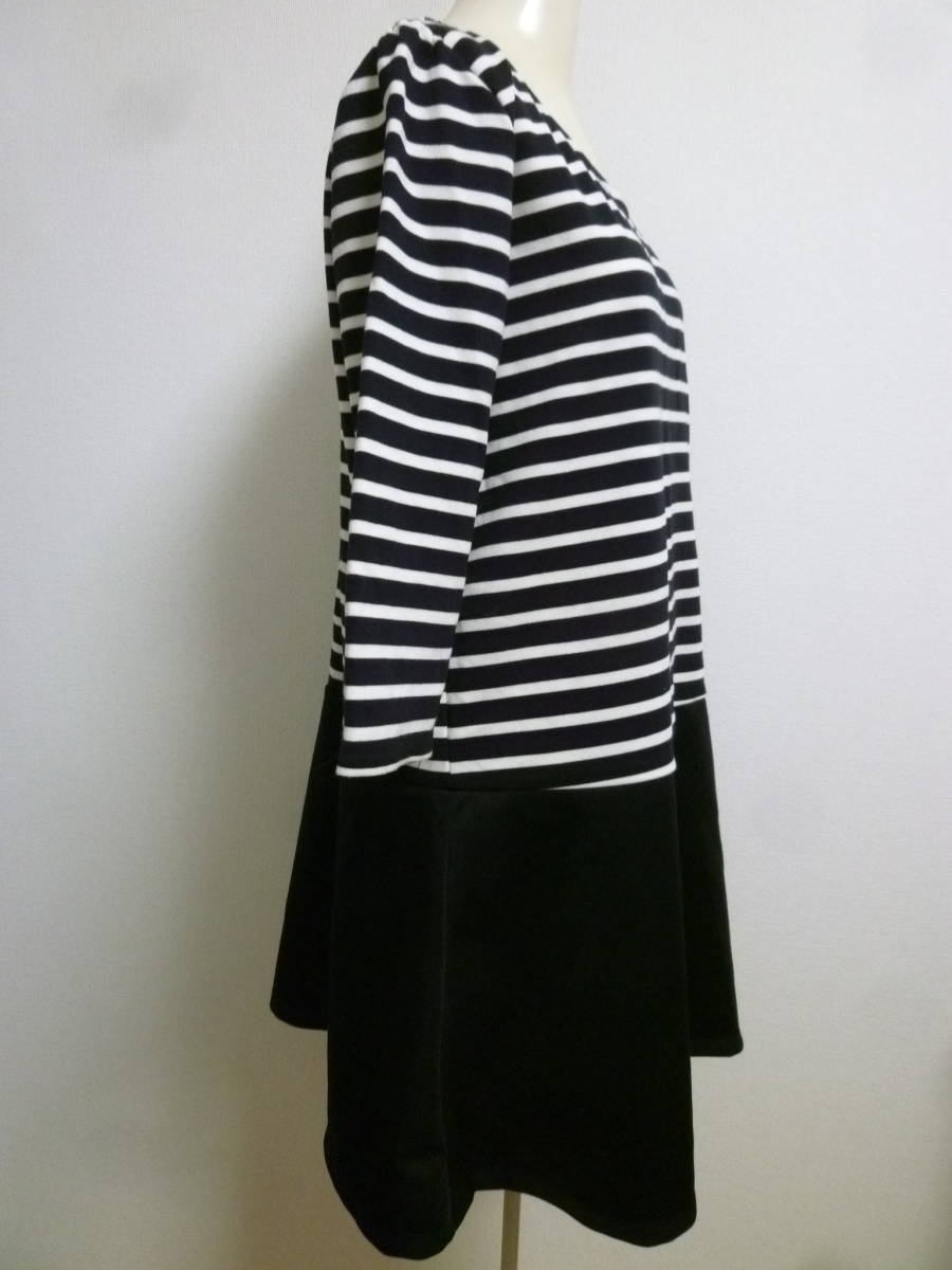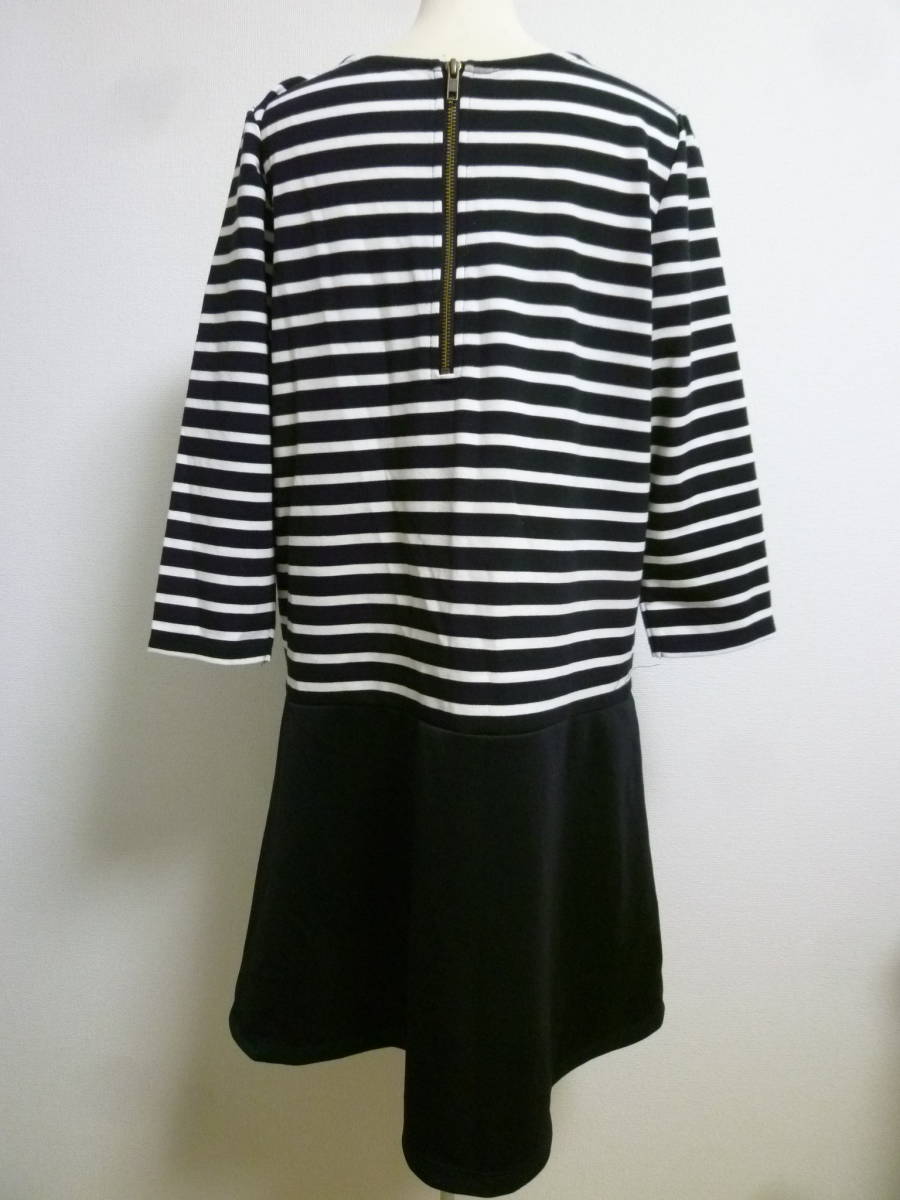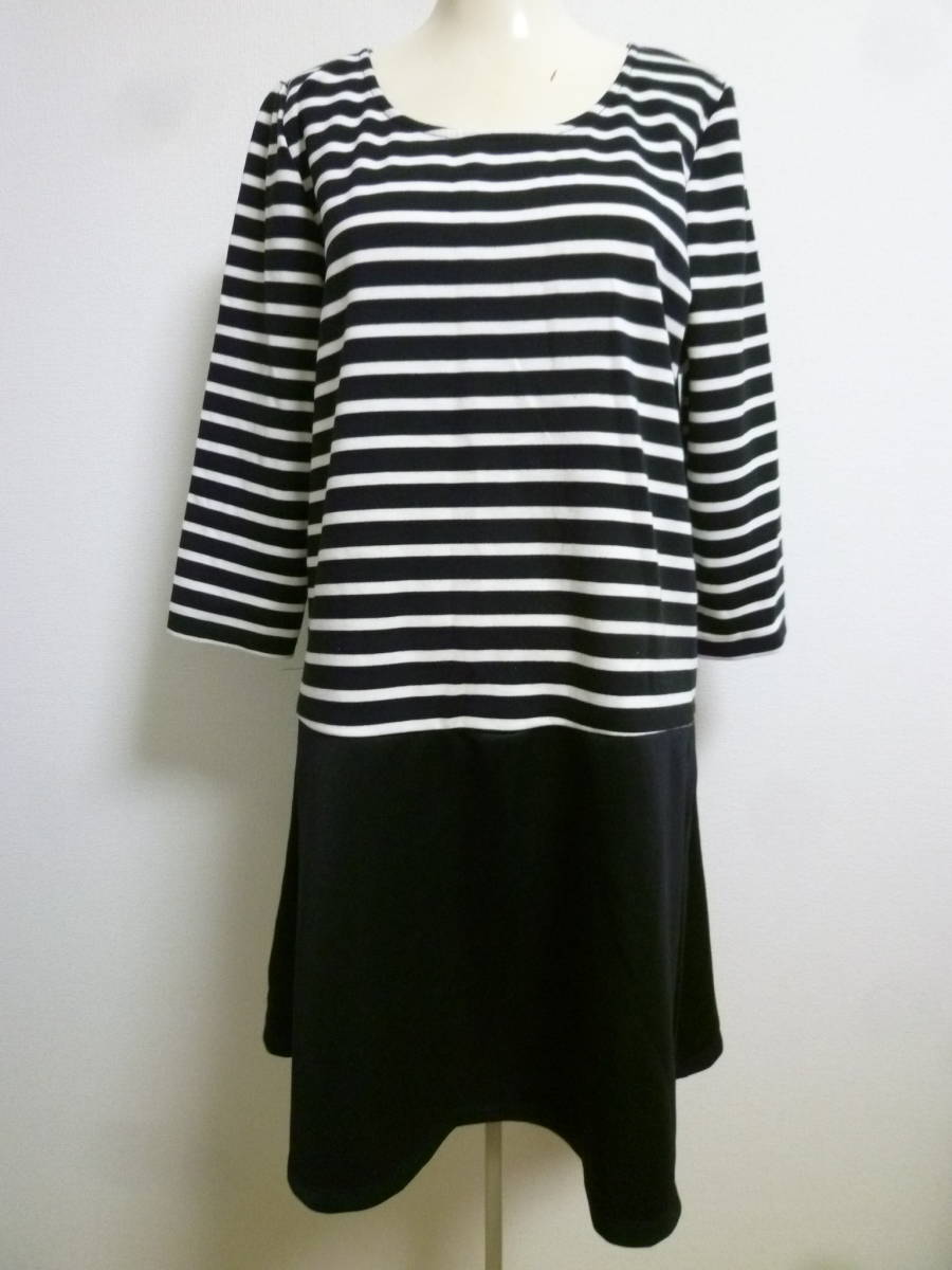 GU/ジーユー♪黒×白ボーダー切り替え背中ジップアップフレアーワンピースXL/大きいサイズ膝丈ブラックホワイト♪324