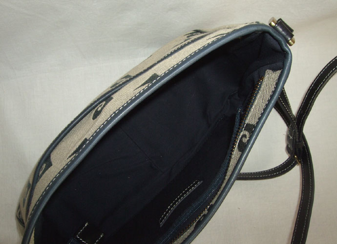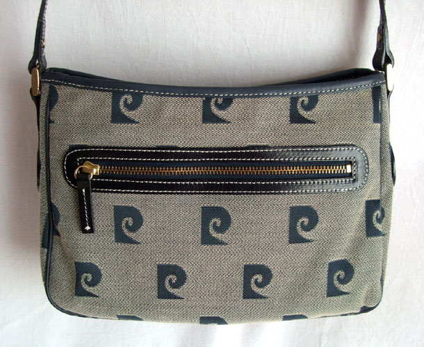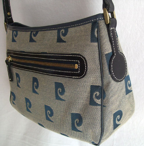 ピエールカルダン【Pierre cardin】紺色系 ショルダーバッグ 斜め掛けバッグ 布xレザー素材
