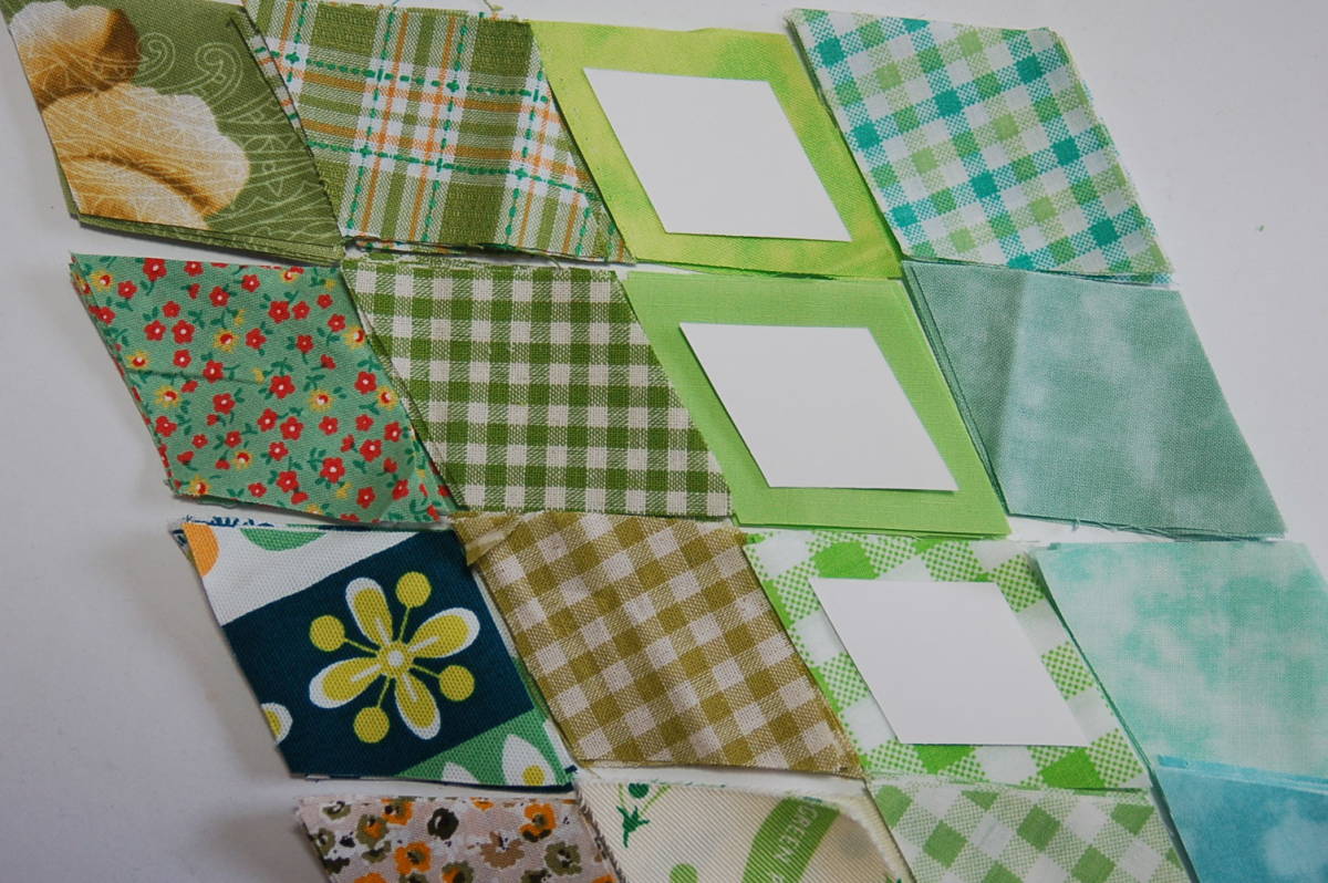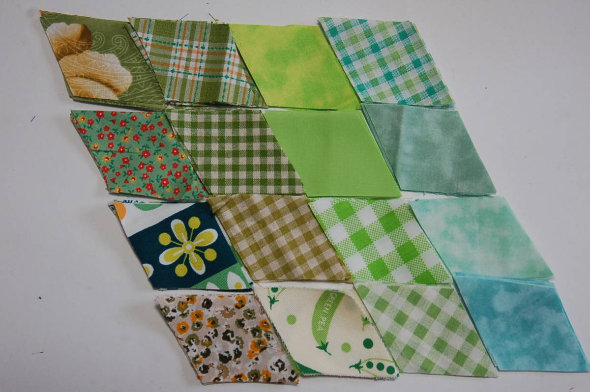 パッチワーク用ひし形出来上がりサイズ35㎜に裁断してます。