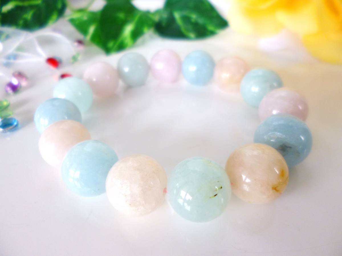 ☆愛と海のパワー☆ミルキータイプ☆ミックスベリル☆アクアマリン☆ピンクアクアマリン(モルガナイト)☆☆大珠12mm☆☆15cm☆