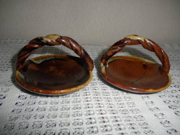 | 九州の焼きもの安野焼の菓子皿です。 高取焼の飴釉を連想するような菓子皿です。 一昔前のものです。 見る限りキズ欠けもなく、状態は良いです。 お茶をされるお方に最適な菓子皿です。 和風のインテリアとしてもご利用になれます。 サイズ 上径9.1cm ×8.3cm 送料 定形外920円可 | |||