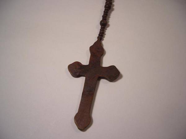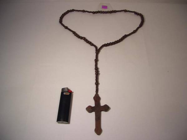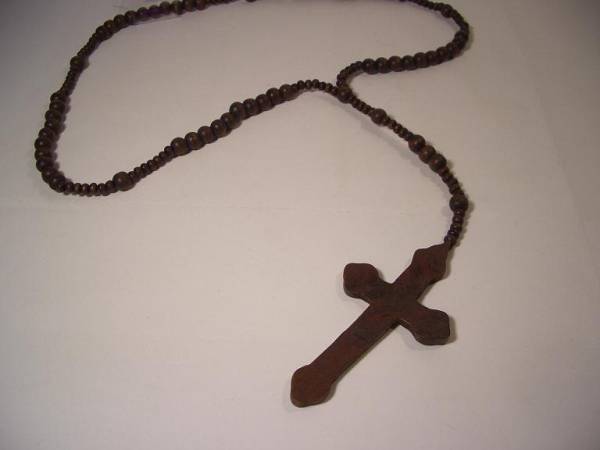 ウッドで作られたロザイリオと、ランダムなウッドビーズで
