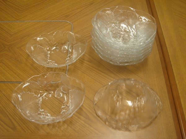 フルーツ柄のかわいいガラス鉢5個セットになります。
