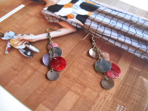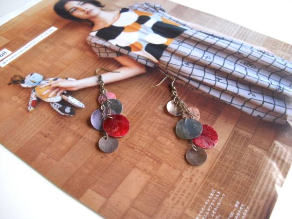 クレアの幸せ・・シリーズです♪フレンチ・ボタン・・ダークパープルやダークレッドやボルドー、サーモンピンクやブルーグレーなどシック色のシェルボタンを集めたキュートなピアスです♪9ミリから17ミリ位までの大きさ違いのシェルがさりげなく巴里っぽい雰囲気です♪長さは全長8センチ位です♪イヤリングにも変更出来ます♪お揃いのネックレスやブレスレットも出品しています♪シンプルで飽きのこないいつまでも着けられるデザインを考えて作りました!ハンドメイドをご理解頂いてノークレーム、ノーリターンでお願いします