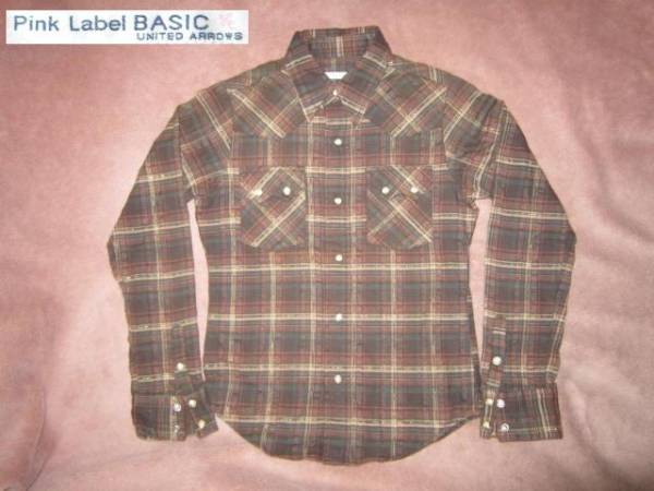 日本製 UNITED ARROWS ユナイテッドアローズ チェック 長袖ウエスタンシャツ 茶 S