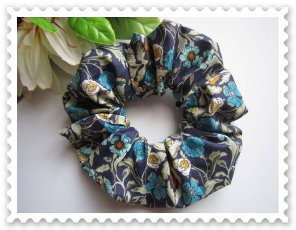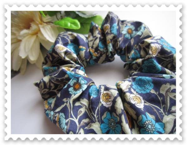 ★シュシュ★ ☆リバティ風☆花柄☆ネイビーパープル系☆