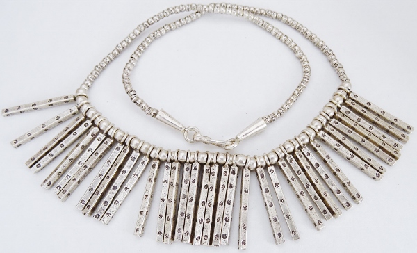 | カレン族シルバーネックレス ドロップ型ロングビーズ【09nn03】 |