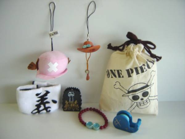 1.エースの帽子 マスコット 2.エースモチーフ ブレスレット 3.ラプーン テープ 4.ブルック コードリール 5.ポーチ 6.チョッパー クリーナー 7.海軍 タオル |
