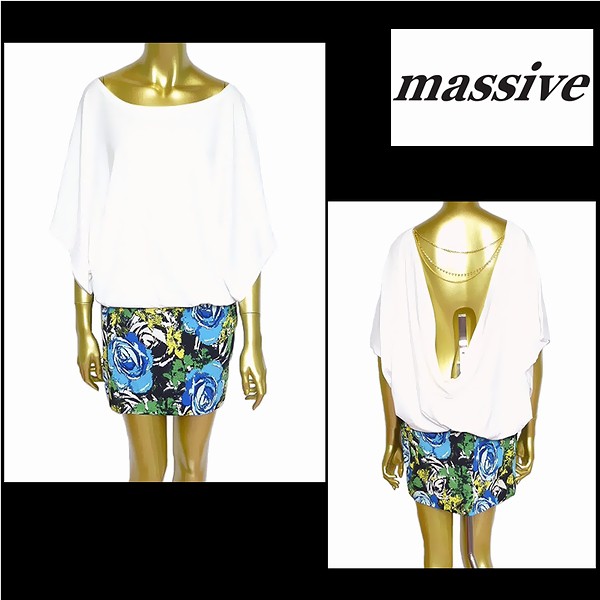 新品 タグ付き AC2101 背中開き バラ柄 ミニワンピ ローズ柄 M ホワイト 白 ワンピース
