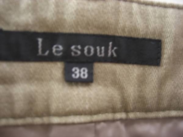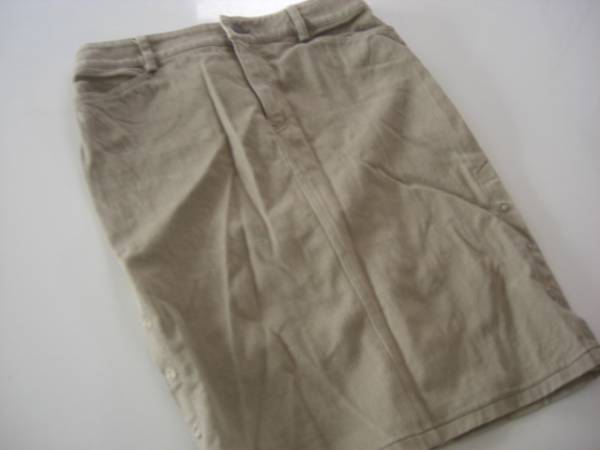 美品ルスーク 裾ボタンデニムスカート カーキ36