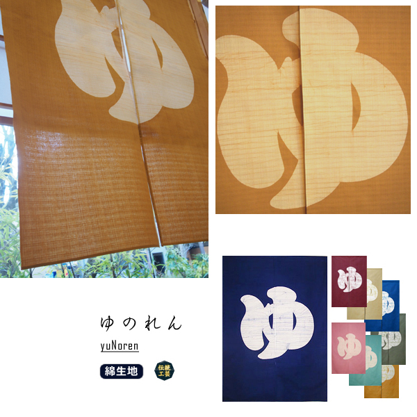 ☆ 本ろうけつ染め“ゆのれん”(ベージュ)ご家庭にも!染元直販!店舗にも!!サイズオーダー!ロゴ入れ!施設にも!! ☆