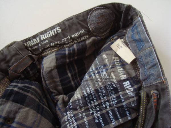 ・採寸:ウエスト 42cm(ウエストの生地あまり cm*背中側) 股上 25、5cm 股下 85cm ワタリ幅(腿付け根幅) 31、5cm 裾幅 19、5cm ダブル幅 cm 折り返し cm