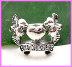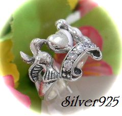 シルバー925銀のジルコニア付き2羽の小鳥&ハート ピンキーリング/3号.5号より